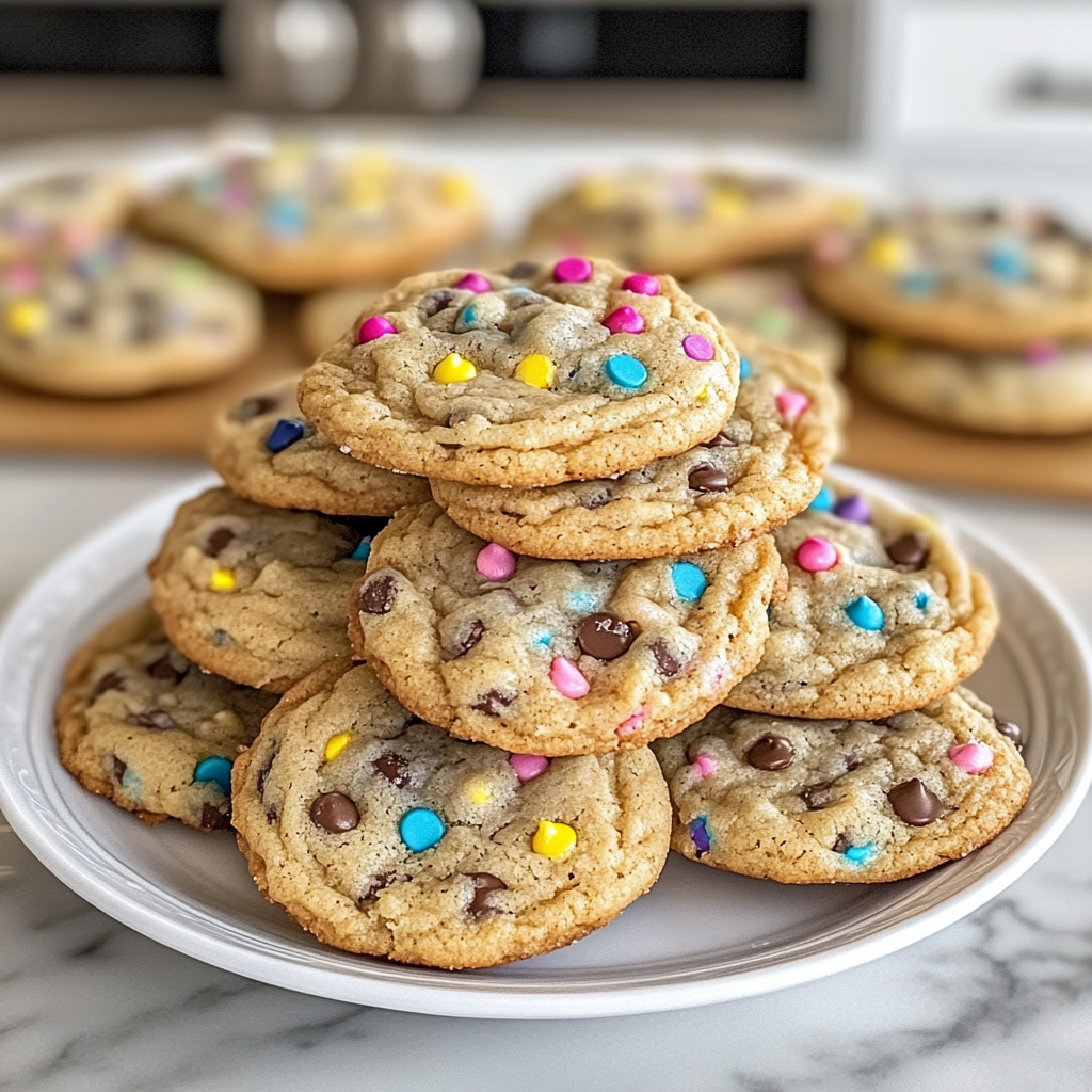 The uniqueness of this recipe lies in its vibrant colors and delightful textures. By adding colorful sprinkles along with traditional chocolate chips, you create an eye-catching treat that appeals to all ages. The combination of flavors from semi-sweet chocolate and colorful candies also adds an extra layer of fun. Instead of standard cookie recipes, this one invites creativity while maintaining that classic cookie taste everyone loves. It’s perfect for celebrations or simply brightening up your day!