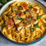 To store leftovers from your Creamy Tuscan Chicken Pasta Recipe (Easy) Juicy, transfer them to an airtight container and refrigerate within two hours of cooking. It should stay fresh for up to three days in the fridge. To reheat, simply warm it gently on the stove over low heat or in the microwave until heated through—adding a splash of cream or broth helps restore its creamy consistency during reheating.