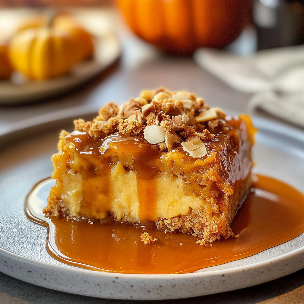 Indulge in the flavors of fall with this Mouthwatering Pumpkin Dump Cake! This easy-to-make dessert combines rich pumpkin puree and warm spices layered under a golden cake mix crust. Perfect for gatherings or cozy nights in, each slice is a delightful bite of autumn, best served warm with whipped cream or ice cream.