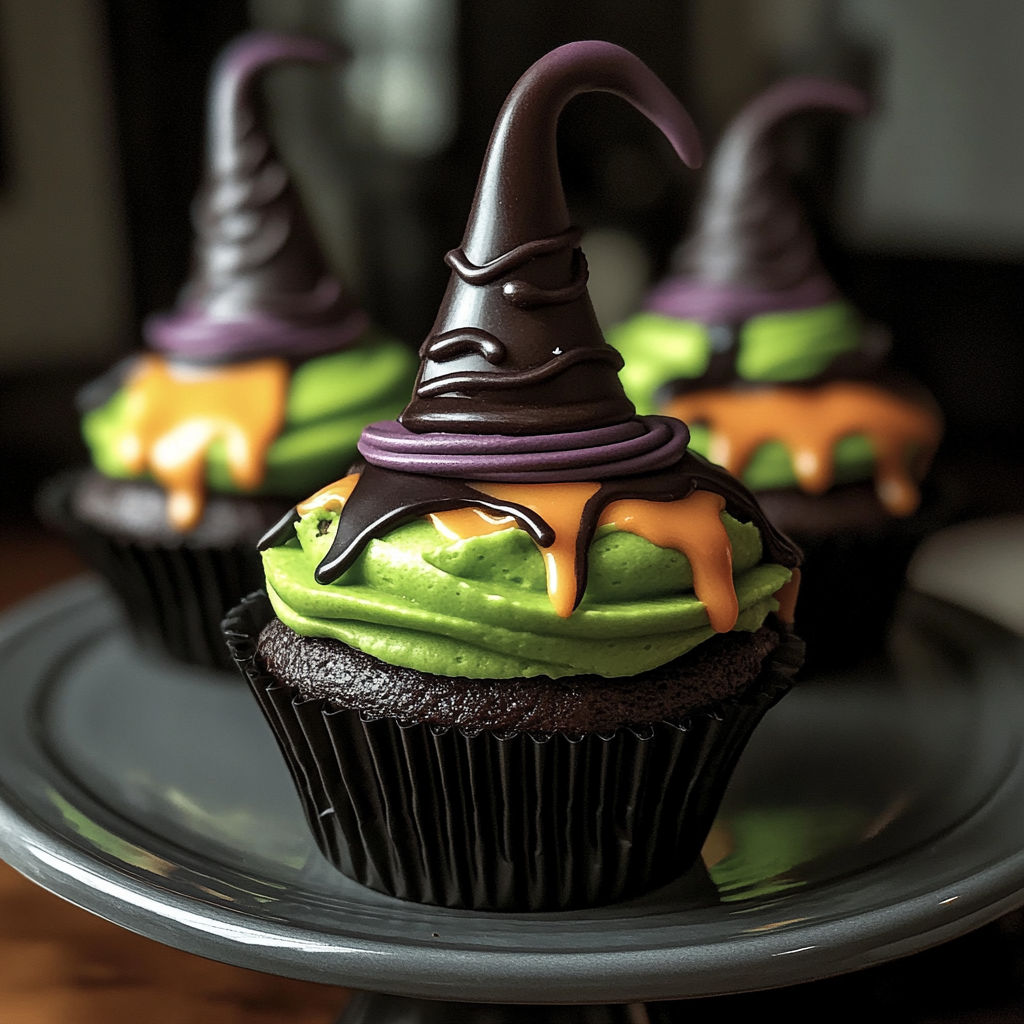 Decorating Wicked Witch Hat Cupcakes (Fun & Festive Halloween Dessert) Rich is where your creativity shines! Beyond traditional witch hats made from cookies and frosting, consider adding edible eyes or candy bats on top for an extra spooky flair. You could also use colored icing to draw spider webs on the cupcake wrappers. The key is to have fun and let your imagination guide you as you create delightful spooky treats!